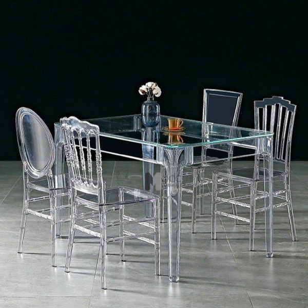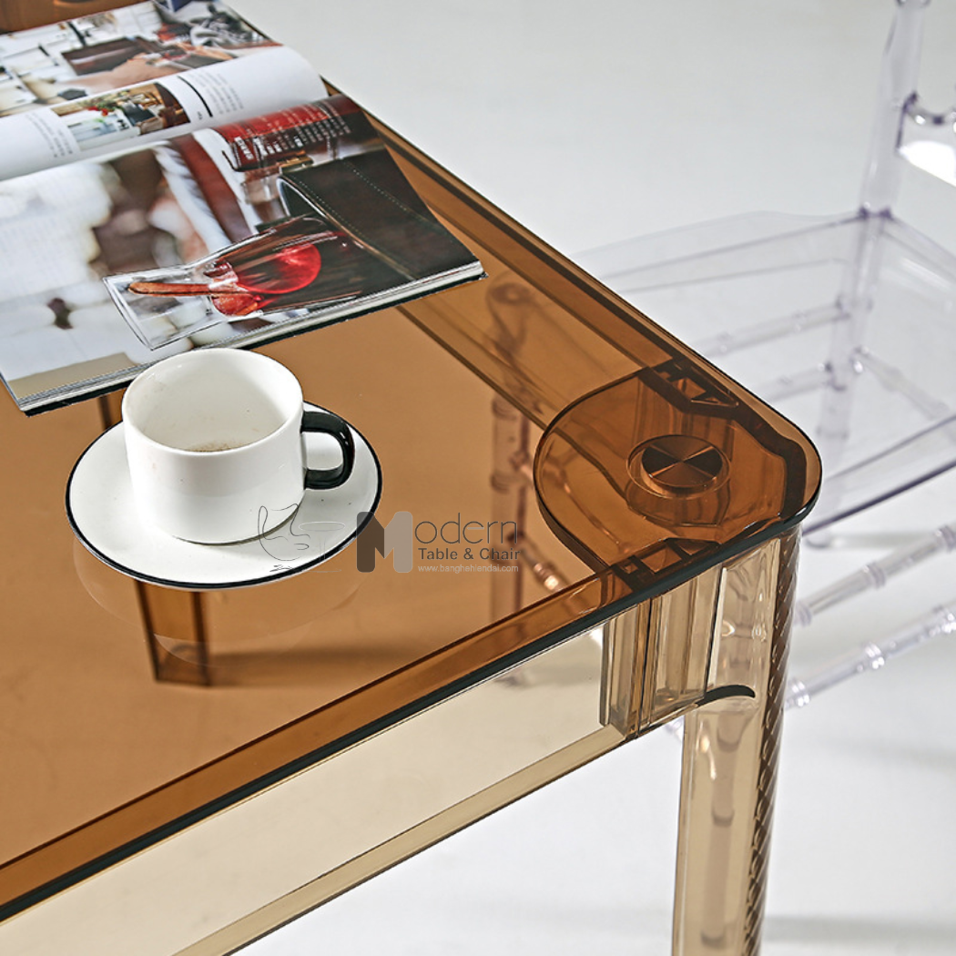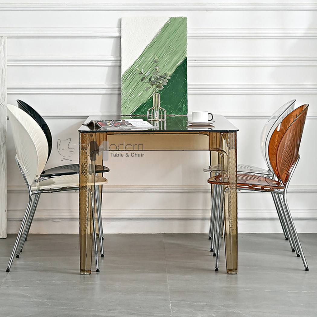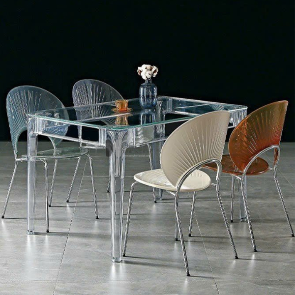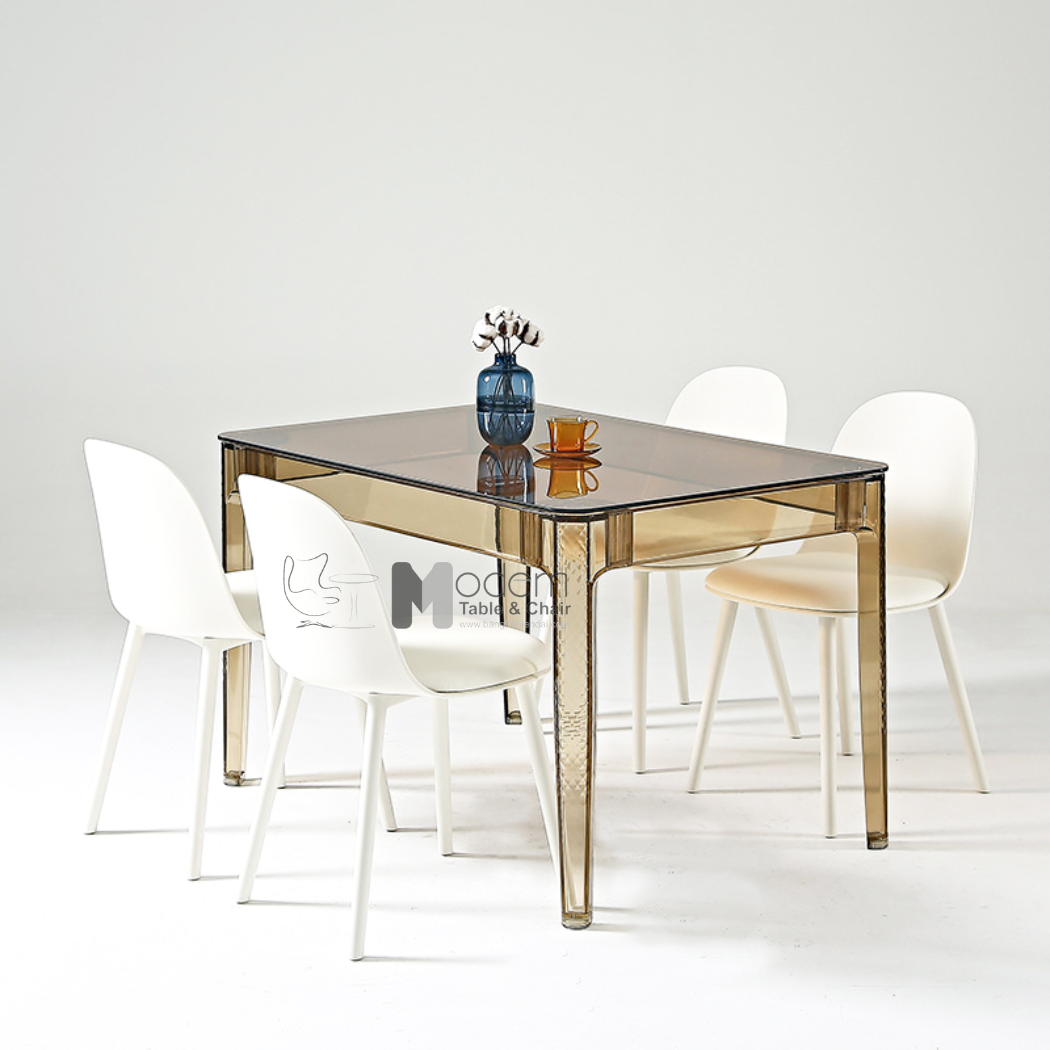 Sự kết hợp giữa mặt bàn kính và chân bàn nhựa trong suốt tạo nên mẫu bàn cuốn hút, hợp thời. Bàn ăn chữ nhật trong suốt TE1540-12G là mẫu nội thất lý tưởng khi sử dụng trong không gian phòng ăn, phòng tiếp khách, nhà hàng, cafe, decor,…