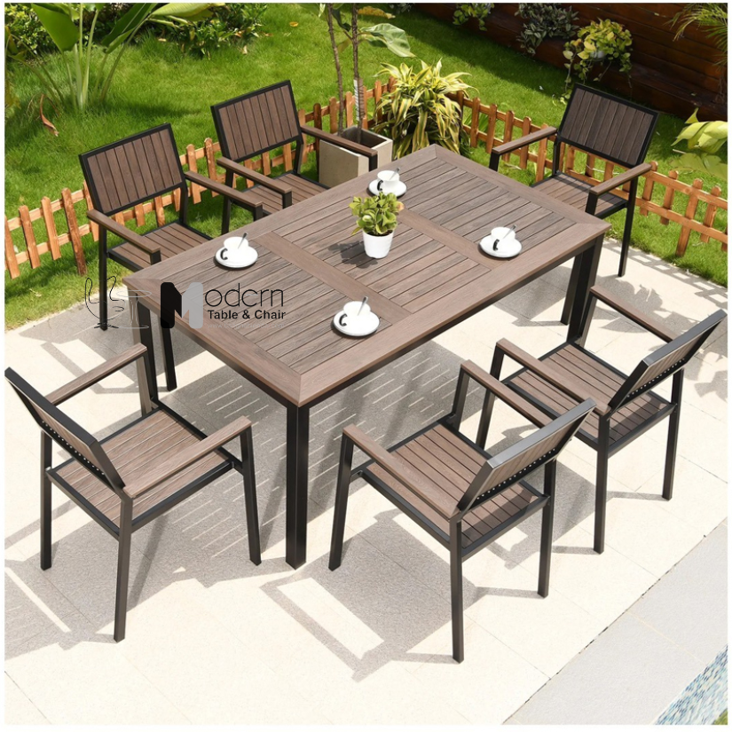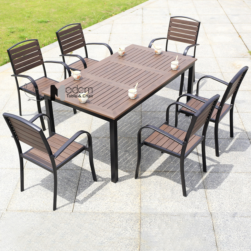 Bộ bàn ăn ngoài trời 1m6 và 6 ghế gỗ nhựa TE2034-160A CC2029-A