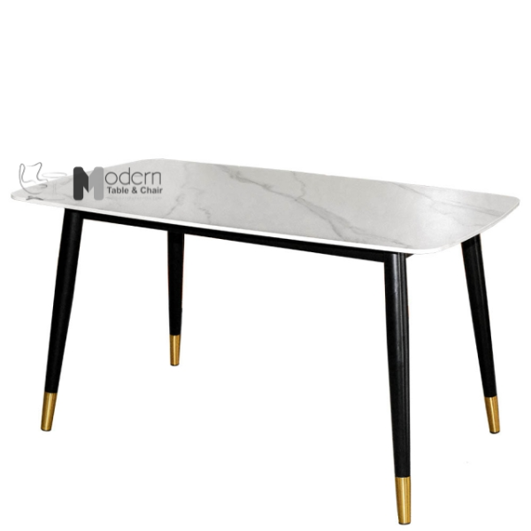 Bàn ăn mặt đá dài 1m3 chân sắt bọc ống xi mạ màu vàng gold