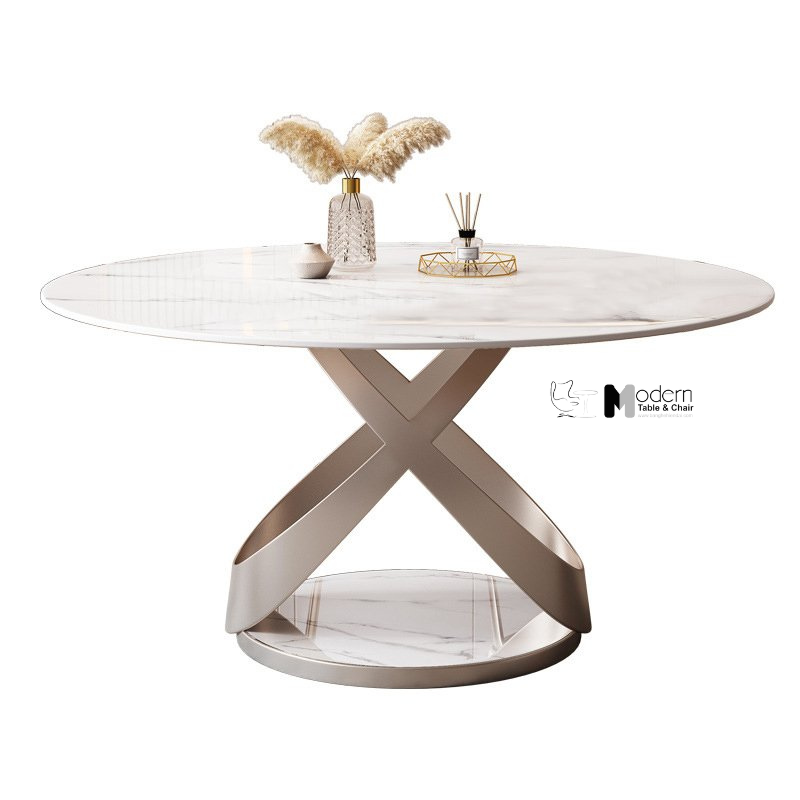 Bàn ăn mặt đá tròn nhập khẩu hiện đại chân sắt sơn tĩnh điện TN Univers-150E