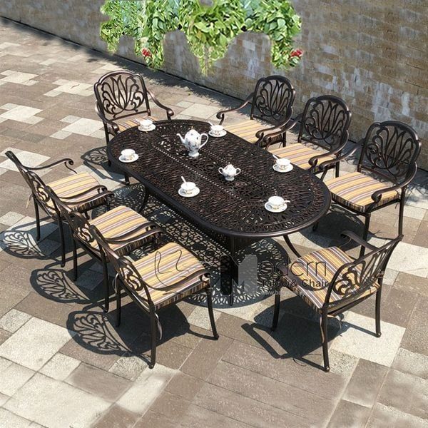Kết hợp bàn ăn oval 2m1 nhôm đúc TE2005-210A với những mẫu ghế nhôm đúc để tạo thành bộ bàn ăn đồng bộ về kiểu dáng, chất lượng.