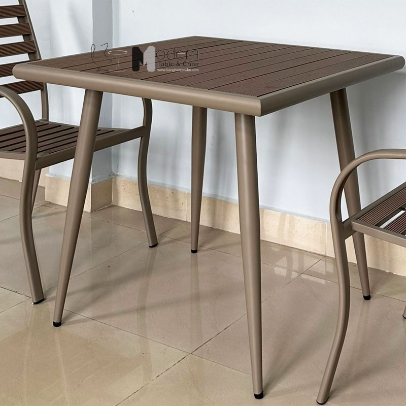 Bàn cafe nhà hàng sân vườn vuông 80 cm khung thép sơn chống rỉ mặt bàn nan gỗ nhựa TE2046-80T