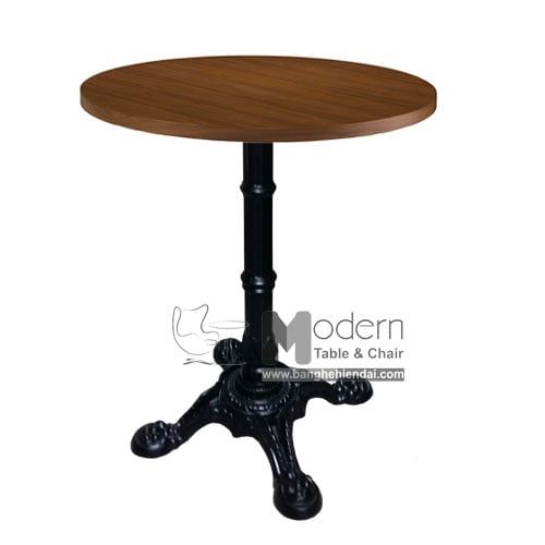 Bàn cafe-fastfood chân gang đúc TE1522-06 thiết kế đế bàn 4 chân với họa tiết hoa văn cổ kính, ống chân được kiểu cách, kết hợp với mặt bàn gỗ MDF Laminate hoặc composte cho không gian trở nên độc đáo sang trọng hơn.