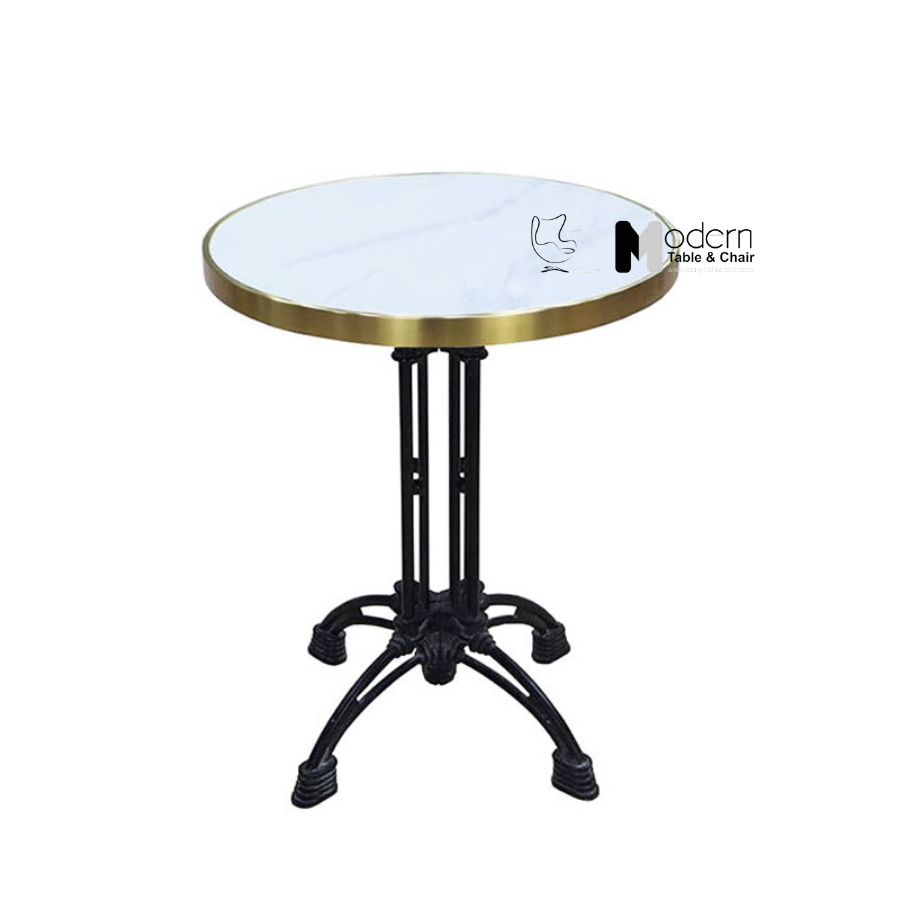 Bàn cafe mặt đá phiến viền inox vàng TE07003-06EC - Mặt trắng vân mây
