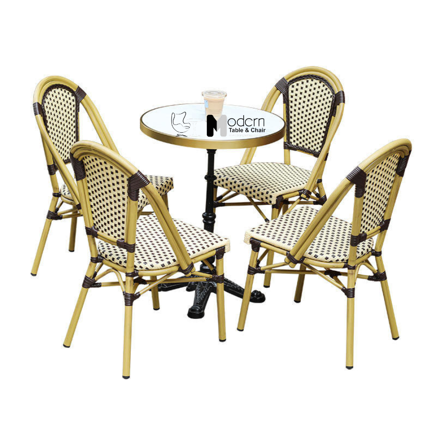 Bàn cafe ngoài trời mặt đá viền inox vàng TE07002-06EC