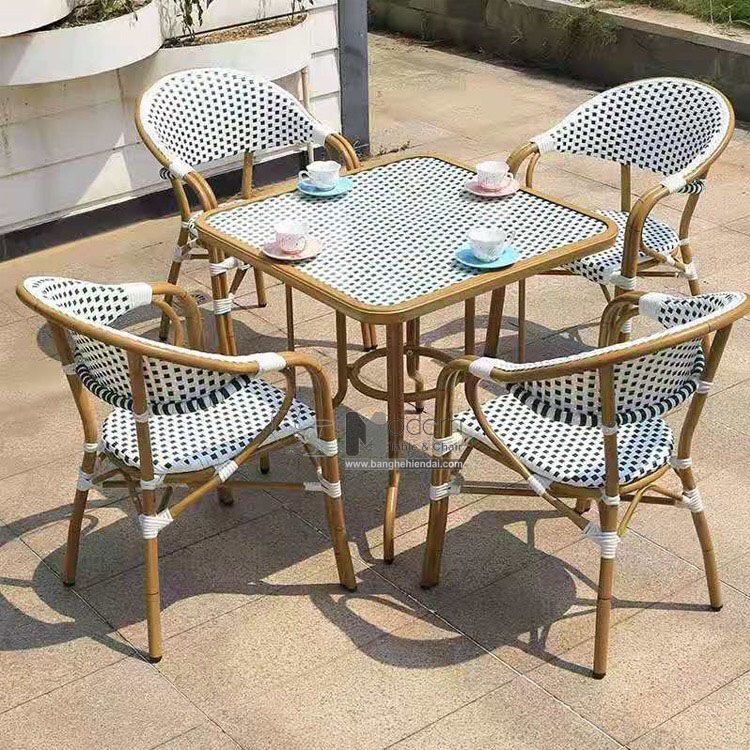 Khung chân bàn bằng nhôm vô cùng chắc chắn, chịu được trọng lực tốt và đặc biệt là hạn chế hoen gỉ oxy hóa trong thời gian sử dụng. Mặt bàn vuông dây nhựa đan kính cường lực một cách tỉ mỉ và tinh tế. Ưu điểm của chất liệu này là chịu lực tốt, ít bám bụi và dễ vệ sinh nên sản phẩm luôn giữ được vẻ sáng mới lâu trời trong thời gian sử dụng.