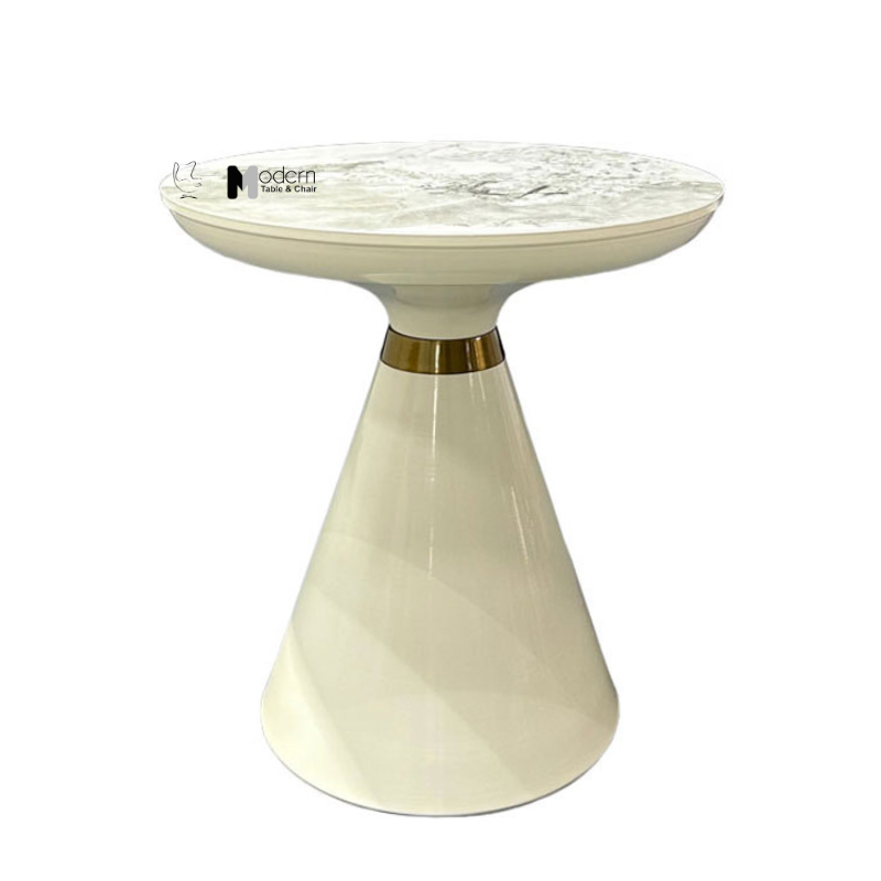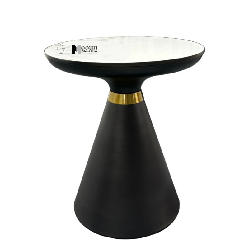 Bàn sofa góc TS0969-05E với mặt bàn bằng đá phiến trắng vân, trắng bóng. Chất liệu bền trong thơi gian dài sử dụng, dễ vệ sinh, chống thấm nước. Chân bàn bằng sắt sơn tĩnh điện hai màu đen, trắng cho bạn lựa chọn tuỳ vào sở thích. Chân hình nón độc đáo có viền kim loại vàng tạo điểm nhấn đặc biệt.