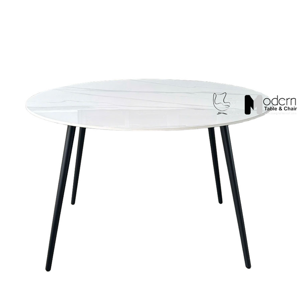 Bàn nhà hàng tròn mặt đá vân mây với kiểu dáng tròn tinh tế, đường kính 1m2 vừa đủ để sắp xếp 4 đến 6 ghế mà không chiếm nhiều diện tích. Thiết kế nhỏ gọn giúp tận dụng tốt không gian mà vẫn tạo cảm giác ấm cúng, gần gũi khi dùng bữa hoặc tiếp khách.
