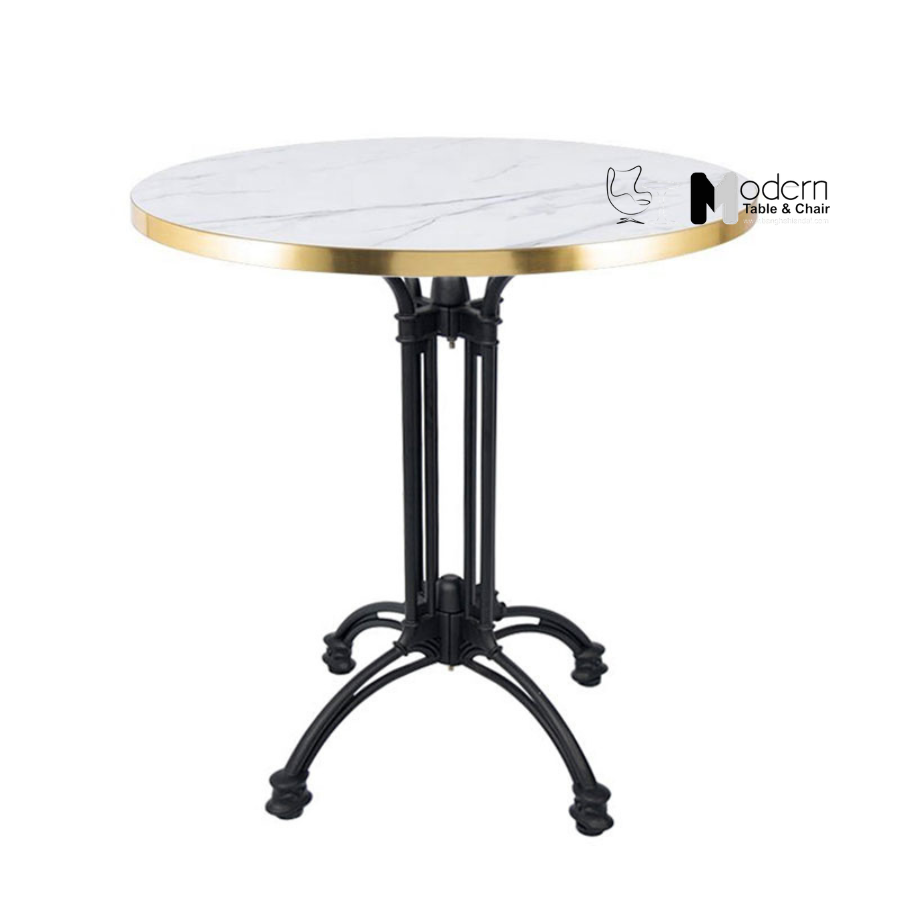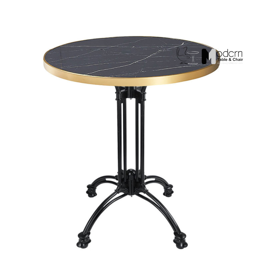 Chất liệu: mặt đá phiến, viền inox màu vàng, chân hợp kim nhôm sơn tĩnh điện màu đen