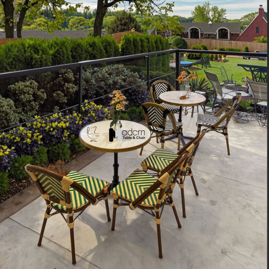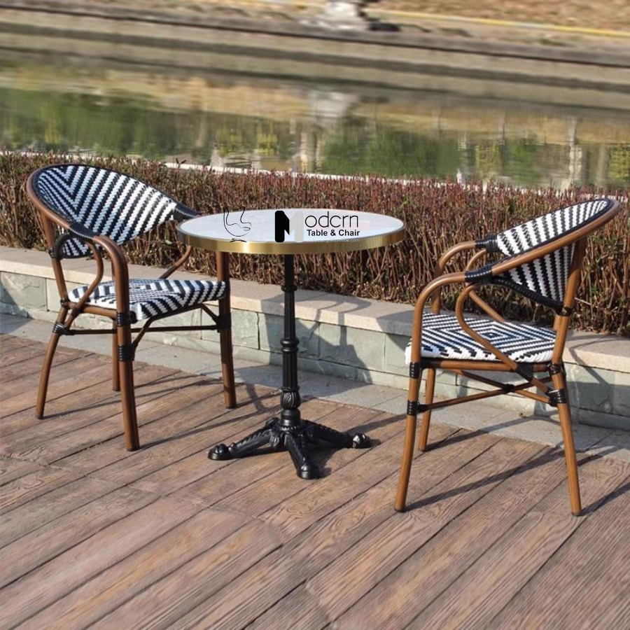 Sản phẩm được cấu tạo từ chân bàn thép hợp kim sơn tĩnh điện, đảm bảo độ chắc chắn và chống gỉ sét khi đặt ở khu vực bàn sân vườn hay bàn ngoài trời. Dù là nắng hay mưa, bàn vẫn giữ được độ bền và vẻ đẹp ban đầu. Đây là lựa chọn hoàn hảo cho các quán cafe sân thượng, khu nghỉ dưỡng hoặc nhà hàng ngoài trời.