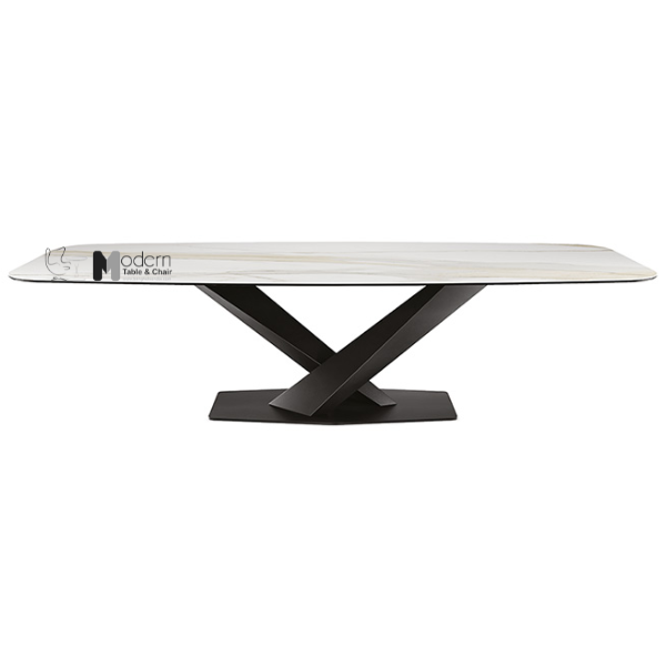 Bàn phòng ăn biệt thự mặt đá dài 2m2 STRATOS chân sắt hình chữ V