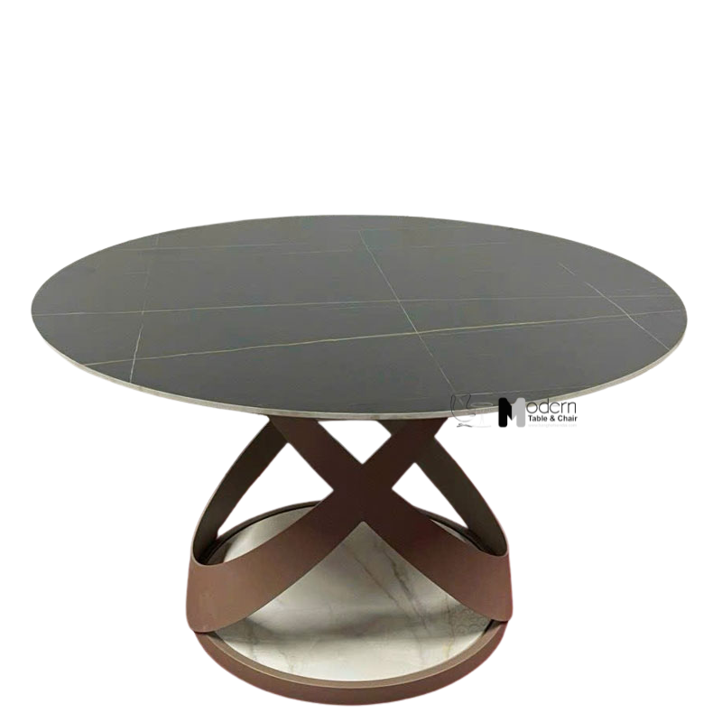 Mặt bàn làm từ đá phiến cao cấp, với những đường vân mây tự nhiên độc đáo, mang đến vẻ đẹp sang trọng và tinh tế cho không gian nội thất. Chân bàn được chế tác từ sắt sơn tĩnh điện, đảm bảo độ bền cao trong thời gian dài sử dụng. Thiết kế phần chân bàn hình chữ X cách điệu mang đến điểm nhấn ấn tượng cho tổng thể kiến trúc ngôi nhà.