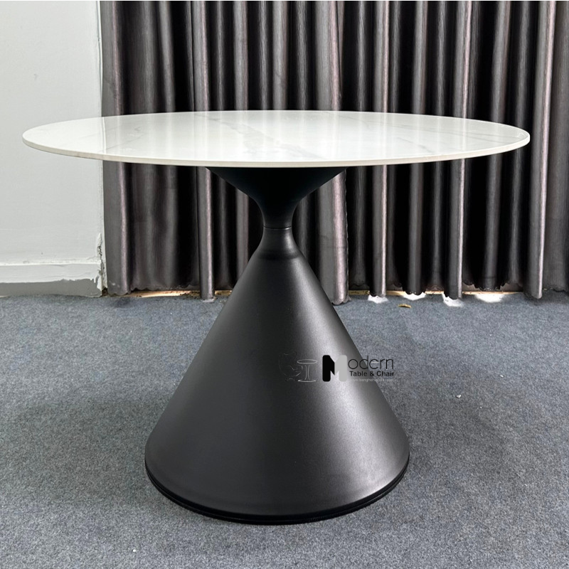 Bàn ăn tròn CROWN 2A-100E có ưu điểm là mặt bàn được làm từ đá phiến cao cấp chống thấm, chống bám bụi, chịu lực và chịu nhiệt tốt. Mặt bàn có đường kính 1m nên ngồi được từ 4 - 6 ghế thích hợp để sử dụng cho những gia đình có nhiều thế hệ. Chân một trụ có đường kính lớn chịu được sức nặng của mặt đá. Thiết kế phần chân được lấy cảm hứng từ hình dáng chiếc nón tạo điểm nhấn độc đáo cho sản phẩm. Để chân tròn bằng thép sơn tĩnh điện đen hoặc trắng trang nhã giúp cho bạn lựa chọn phù hợp với không gian.