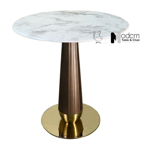 • Chất liệu: Mặt đá pha lê nhập khẩu, chân sắt sơn tĩnh điện vân gỗ, đế inox mạ vàng.