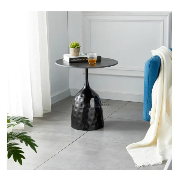 Bàn trà Bàn sofa góc tròn 60 mặt gỗ chân sắt màu đen