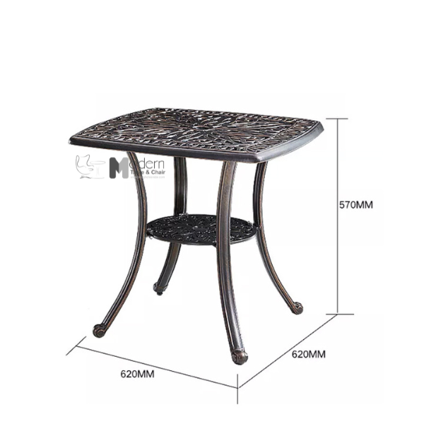 Bàn trà vuông thấp nhôm đúc TE2026-62A phù hợp làm bàn cafe nhôm đúc cao cấp, bàn trà hồ bơi sân vườn, bàn cafe thấp ban công sân thượng,…