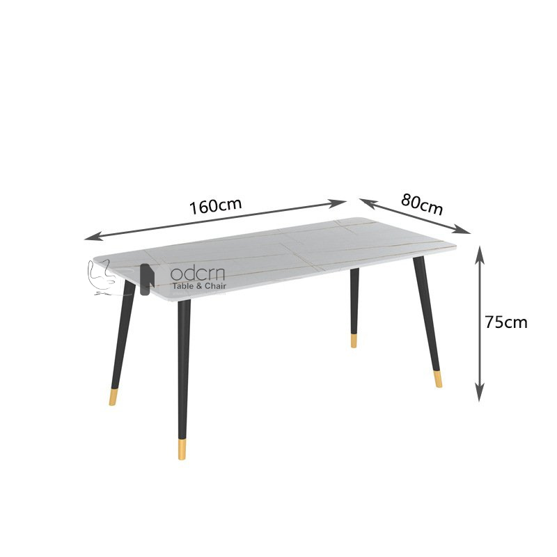 Bàn ăn mặt đâ vân mây thổi hồn vào phòng ăn sự sang trọng phóng khoáng. Kích thước dài 1m6 thoải mái bố trí 6 ghế ăn mà không sợ bị chật. Thiết kế 4 chân bàn truyền thống tạo sự thoáng đáng cho không gian. Bạn có thể đẩy ghế vào dưới mặt bàn để tiết kiệm diện tích nếu thấy cần thiết. Chân bàn sắt sơn tĩnh điện hạn chế các tình trạng oxi hoá gỉ sét trong không khí, đem lại vẻ đẹp dài lâu. Dưới gót chân bàn được nhấn nhá bằng ống màu vàng sang trọng.