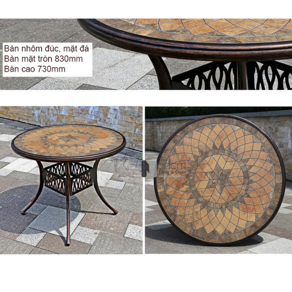 | CHẤT LIỆU | Mặt đá, khung chân nhôm đúc sơn tĩnh điện |