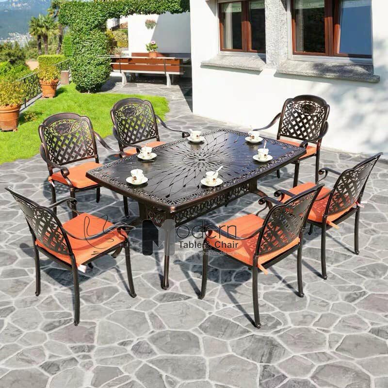Bộ bàn chữ nhật ngoài trời nhôm đúc 6 ghế có nệm nhập khẩu hiện đại thích hợp dành cho không gian sân vườn ngoài trời, bàn ghế khu vực bể bơi, bàn ghế thư giãn ngoài trời, bàn ghế ngoài trời khách sạn,....