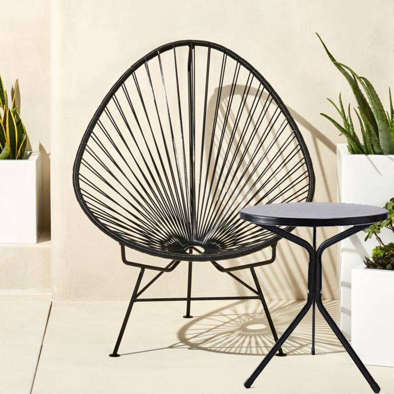 Ghế Acapulco với thiết kế hiện chất liệu bằng các sợi dây Vinyl đàn hồi cao, bền đan xen với nhau tạo ra một vòng tròn đa màu, phía dưới là những thanh thép chắc chắn, an toàn cho người sử dụng.