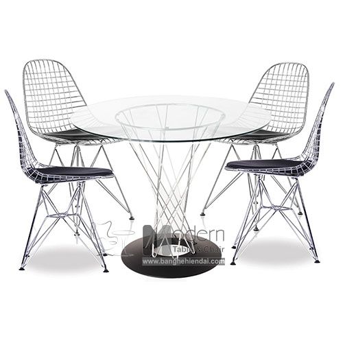 1 bàn Cyclone tròn kính 80cm và 4 ghế DKR thép mạ hiện đại HCM