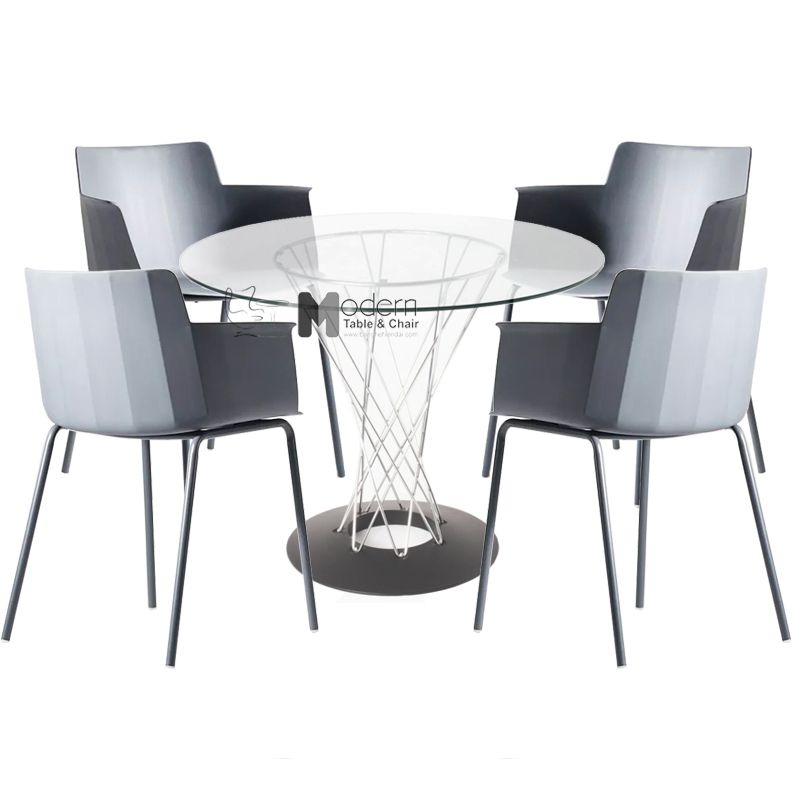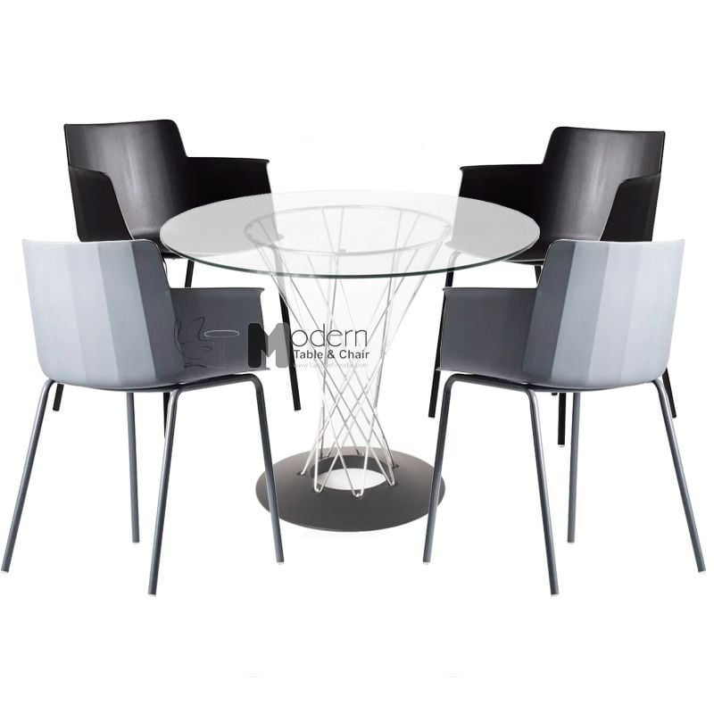 Bộ bàn mặt kính cường lực tròn 4 ghế tiếp khách hiện đại nhập khẩu