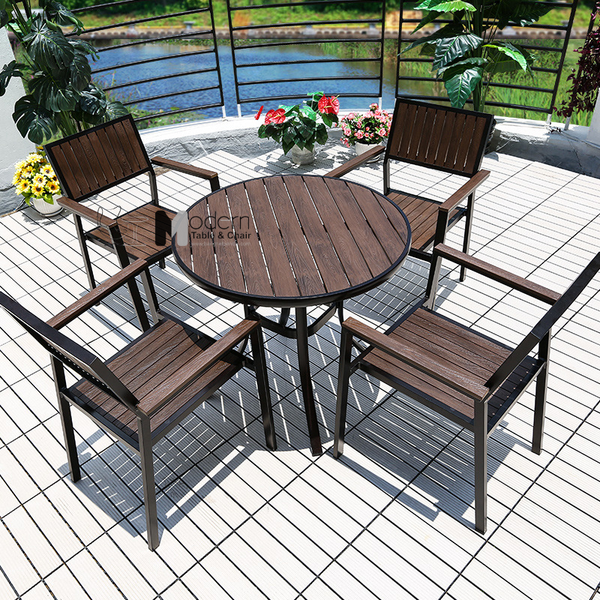 Bộ bàn ngoài trời tròn 4 ghế nhựa giả gỗ hiện đại TE2032-80A CC2029-A