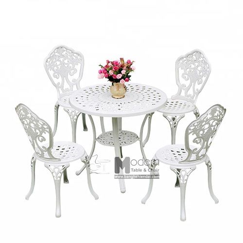 Bộ bàn tròn nhôm đúc màu trắng 4 ghế nhập khẩu TE2003-78A CC2012-A