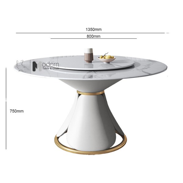 Bàn ăn tròn xoay mặt đá phiến ceramic với các ưu điểm chống trầy xước, chống thấm nước, chịu nhiệt độ cao. Bàn được bố trí 2 tầng tiện lợi: Mặt bàn lớn đường kính 1m35 thuận tiện bố trí 6 8 ghế ăn. Mâm bàn nhỏ được đặt ở vị trí cao hơn nhằm để bố trí đồ ăn chung. Mâm xoay tròn 360 độ giúp mọi thành viên có thể lấy thức ăn trong tầm với một cách dễ dàng.