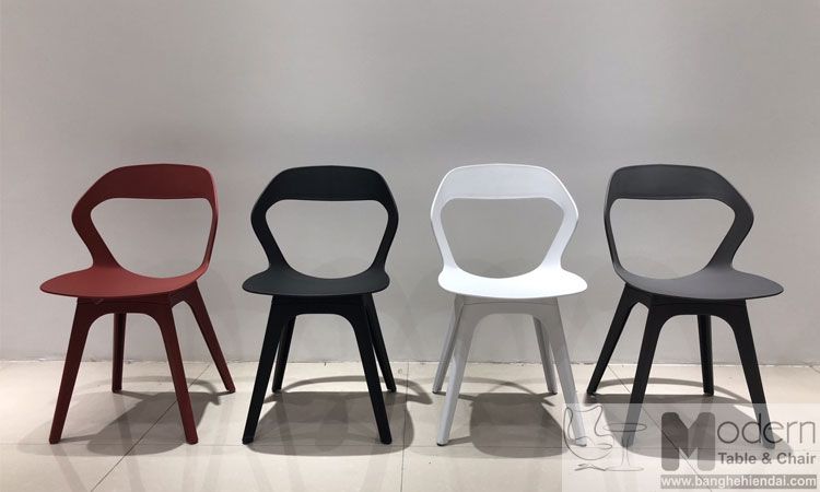 Bộ tiếp khách có một bàn tròn thiết kế đơn giản nhưng tinh tế. Mặt bàn làm bằnggỗ phủ kính, chân bàn thép sơn tĩnh điện, bàn 3 chân hình chữ V độc đáo kết hợp với ghế nhựa đúc cao cấp, lưng ghế tựa bánh tổ ong tạo thành khối liên kết chặt chẽ.