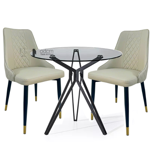 Bộ bàn tiếp khách tròn mặt kính 2 ghế nệm chân sắt TE1538-09G Eco 22C-P