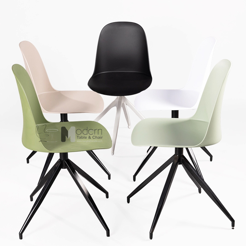 Ghế tiếp khách nhựa thân xoay CE1027-1S phần ngồi bằng nhựa PP dày dặn chịu lực tốt. Bề mặt phế phẳng láng đem lại sự tiếp xúc dễ chịu. Chất liệu nhựa không thấm nước giúp bạn dễ dàng vệ sinh lau sạch vết bẩn khi cần thiết. Thân ghế xoay 360 độ linh hoạt trong việc xoay người trái phải. Chân ghế sắt sơn tĩnh điện 2 màu trắng hoạc đen đều bền trong không khí.