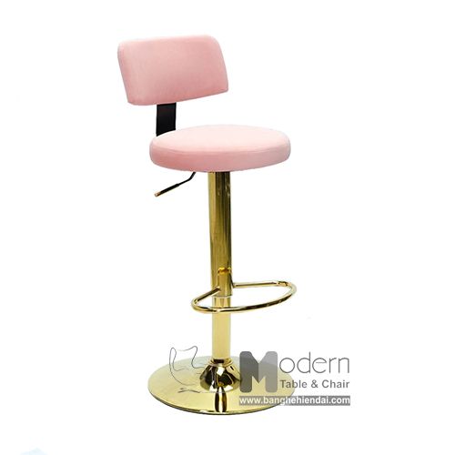 Ghế bar bọc vải nhung chân mạ màu vàng tăng giảm chiều cao CB2268B-F