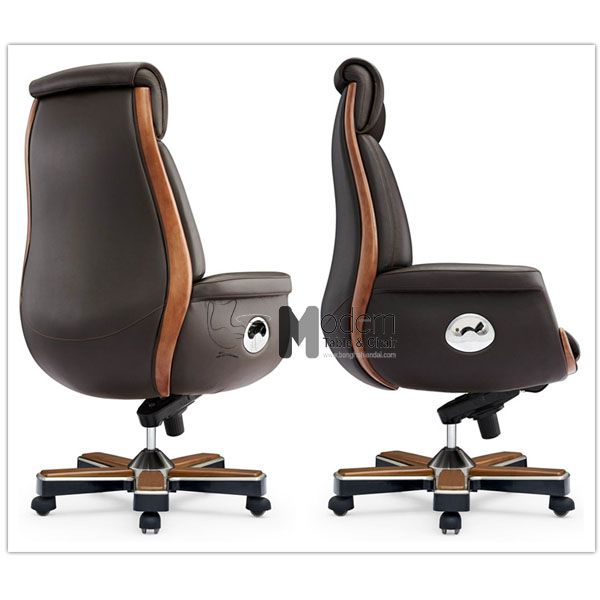 Ghế giám đốc nhập khẩu bọc da thật ốp gỗ sang trọng