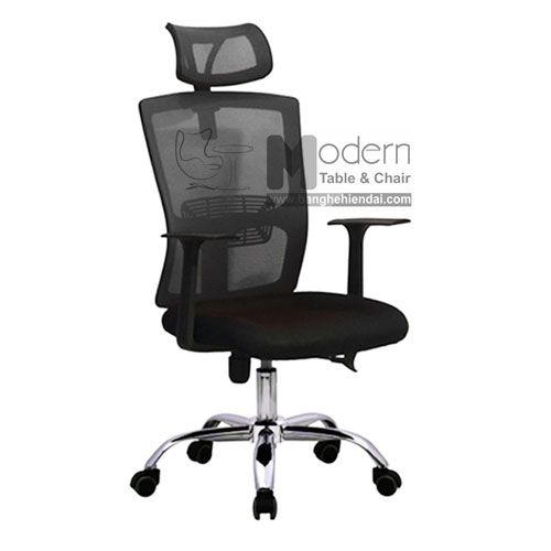 CM4251-M | Ghế xoay văn phòng lưng lưới có tựa đầu, chân thép mạ chrome cao cấp