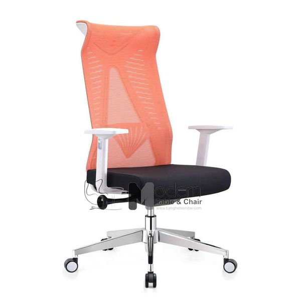 Ghế trưởng phòng lưng lưới cao nệm vải tay nhựa chữ T màu cam
