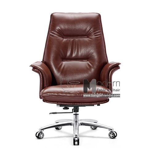 Ghế da giám đốc nệm dày cổ điển màu nâu