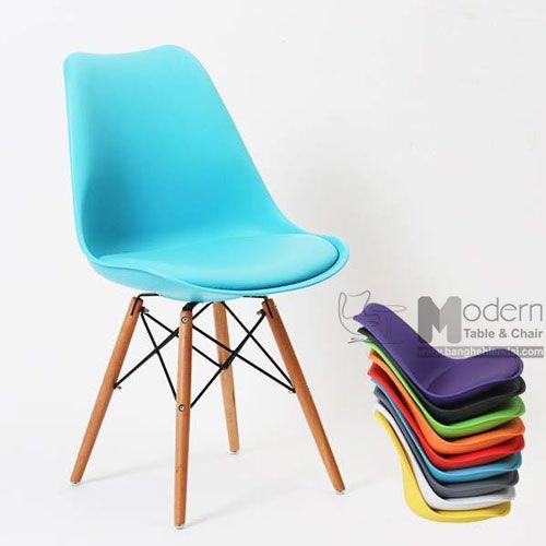 DSW-P11 | Ghế cafe fastfood thân nhựa có nệm, chân gỗ nhập khẩu với thiết kế thân nhựa nệm ngồi PVC rất thoải cho ngồi . Mùa sắc sinh động, ghế DSW P11 có rất nhiều màu khách hàng dễ dàng lựa chọn phối trong mọi không gian yêu thích