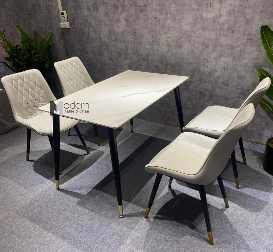 Bộ bàn ăn mặt đá 4 ghế nệm chân sắt Sala-12E Lux 39A-P