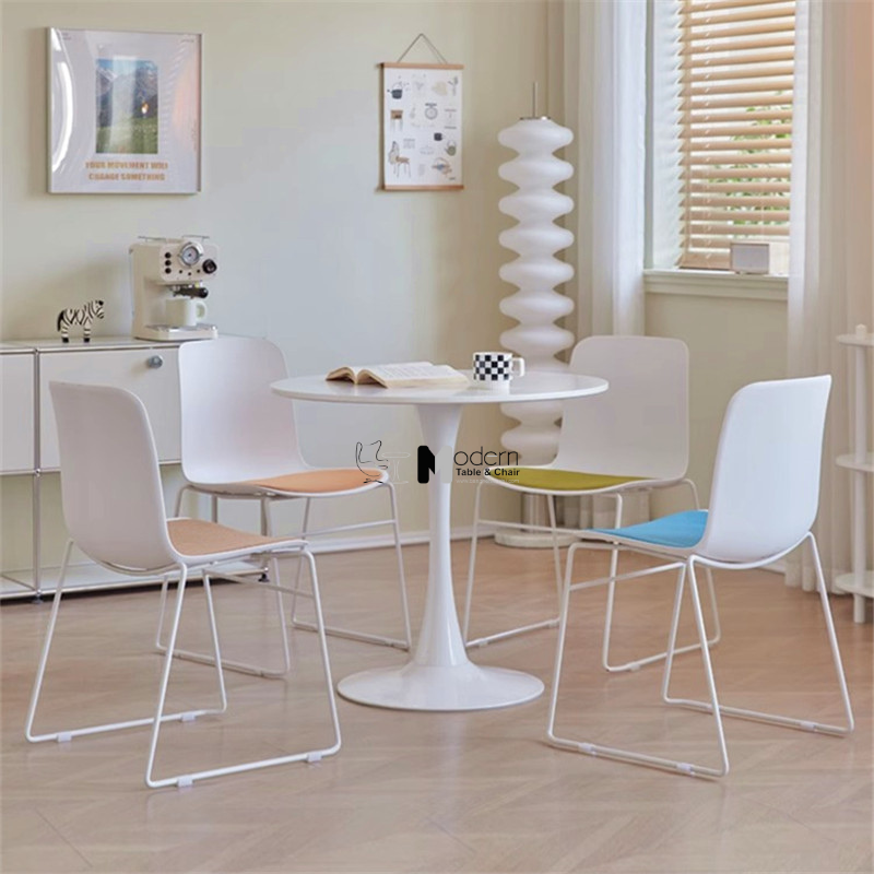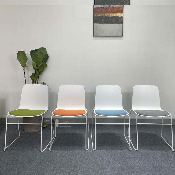 Chất liệu: Nhựa PP trắng, nệm vải bố nhiều màu, chân sắt sơn tĩnh điện