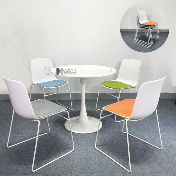 Ghế ăn xếp chồng thân nhựa nệm vải chân sắt vòng được ưa chuộng bởi sự hiện đại tiện dụng trong bất kì không gian nào sử dụng nó. Vì vậy, nó được ứng dụng phổ biến làm ghế đào tạo, ghế tiếp khách văn phòng, ghế phòng họp hiện đại, ghế học thư viện, ghế ăn căn hộ hiện đại, ghế cafe nhà hàng.