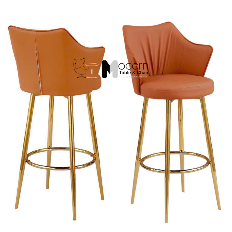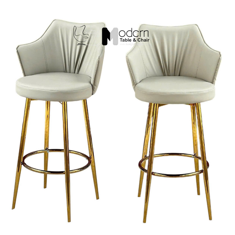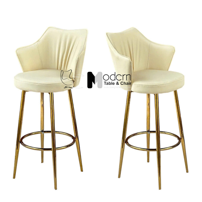 Chân ghế thép mạ vàng bóng: Chân ghế cố định được làm từ thép không gỉ, mạ vàng bóng loáng, tạo nên sự đẳng cấp và thu hút ánh nhìn. Lớp mạ vàng không chỉ giúp tăng tính thẩm mỹ mà còn chống lại sự ăn mòn, kéo dài độ bền cho sản phẩm.