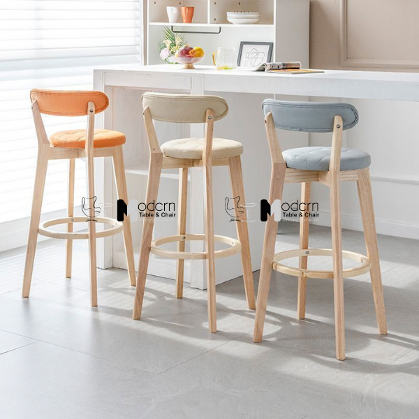 Ghế quầy bar khung gỗ thân có nệm có tựa lưng CB BEE-72W