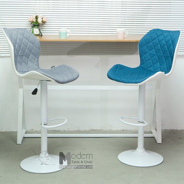 Ghế bàn đảo Ghế bar nệm vải lưng cao bọc da chân sắt CB2271-F - Màu xanh - trắng
