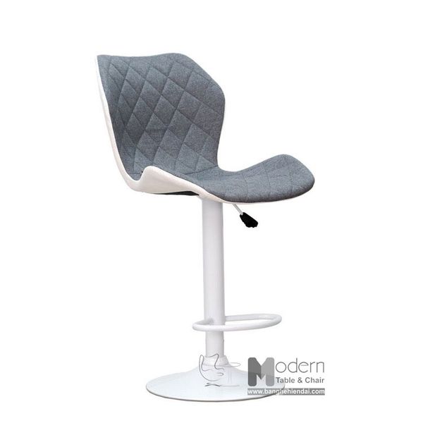 Ghế bàn đảo Ghế bar nệm vải lưng cao bọc da chân sắt CB2271-F - Màu xám - đen