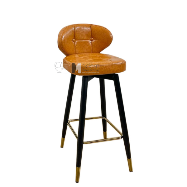 Chân ghế sắt cố định dày chắc, phù hợp nhiều vóc dáng người ngồi. Bề mặt chân sắt sơn tĩnh điện bền trong không khí. Gác chân ghế sắt mạ màu vàng gold sáng bóng. Gót chân ghế bọc ống đồng cùng màu với gác chân, tăng sự đồng bộ.