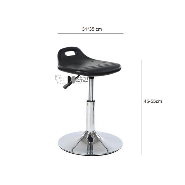 Nệm ngồi ghế xoay tròn tạo sự linh hoạt trong tư thế làm việc, nhờ đó kỹ thuật viên có thể xoay người trái phải thoải mái để lấy đồ vật trong tầm với. Pen ghế nâng hạ 45 – 55 cm nên bạn có thể điều chỉnh chiều cao ghế phù hợp với tư thế ngồi. Mâm chân tiết diện lớn vững chắc không lo bị nghiêng đổ trong quá trình ngồi làm việc.