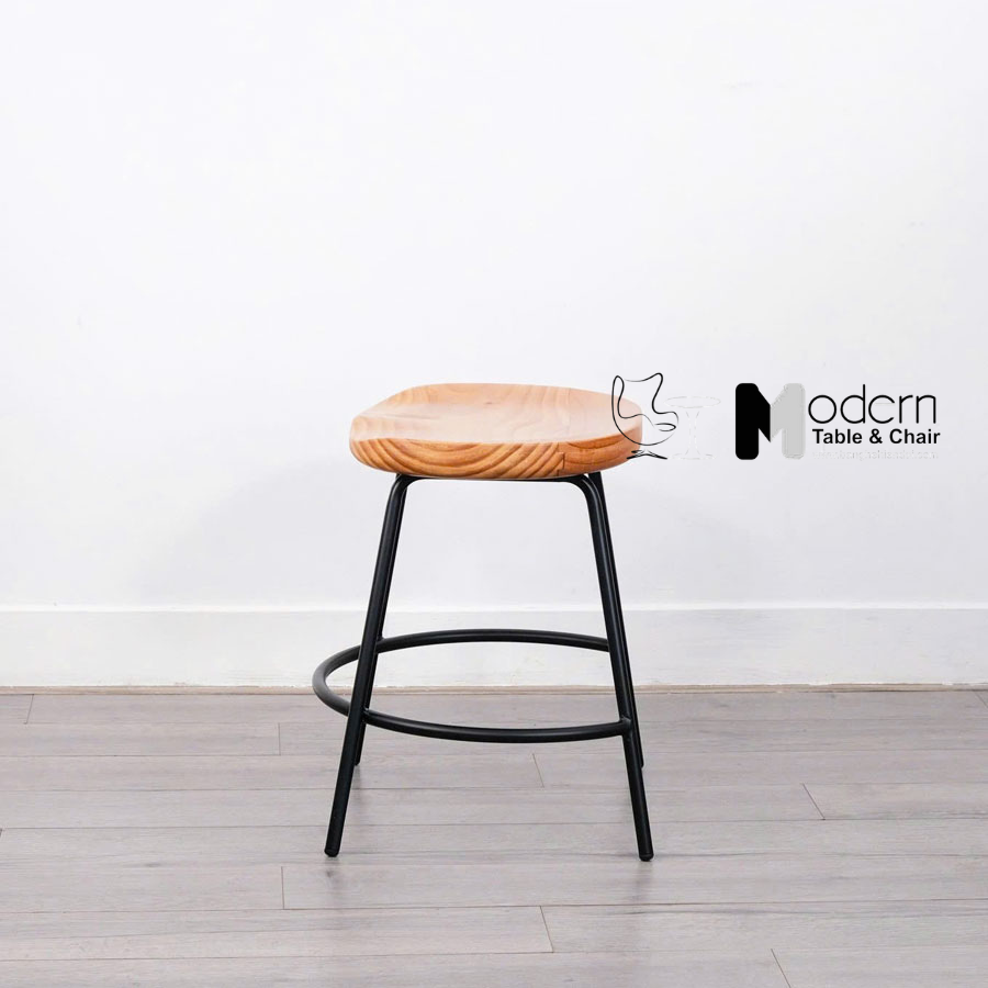 Với mặt ngồi bằng gỗ thông tự nhiên mộc mạc, kết hợp cùng chân sắt sơn tĩnh điện màu đen, mẫu ghế cà phê nhỏ gọn mặt gỗ chân sắt mang lại cảm giác vừa hiện đại, vừa gần gũi. Thiết kế không tựa giúp tiết kiệm diện tích, đồng thời dễ dàng sắp xếp linh hoạt trong không gian nhỏ, căn hộ, quán cà phê hay khu vực ngoài trời.