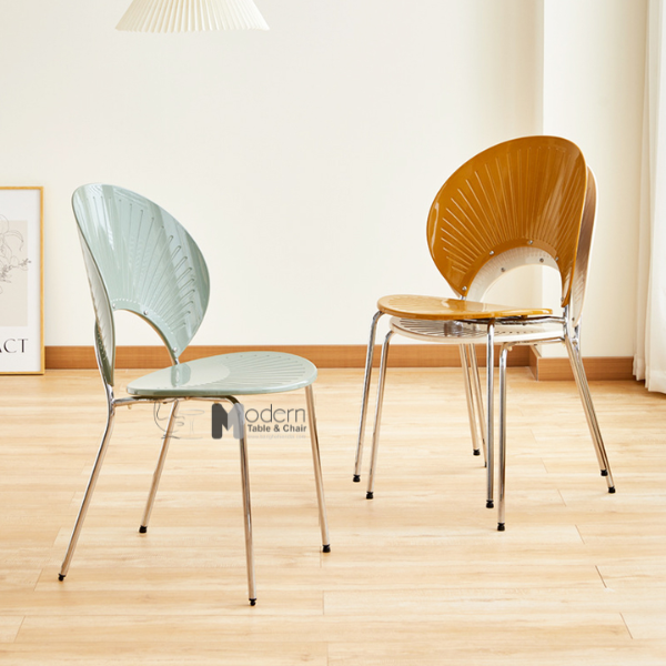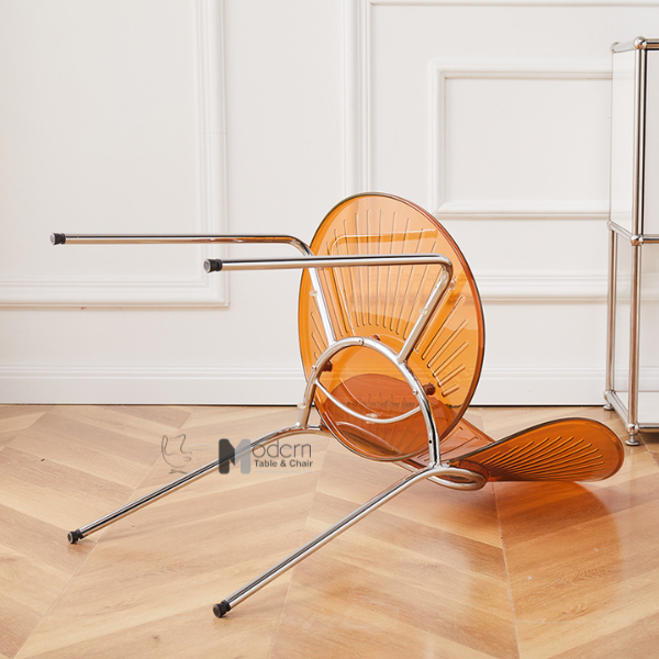Ghế nhựa xếp chồng trong suốt chân thép.