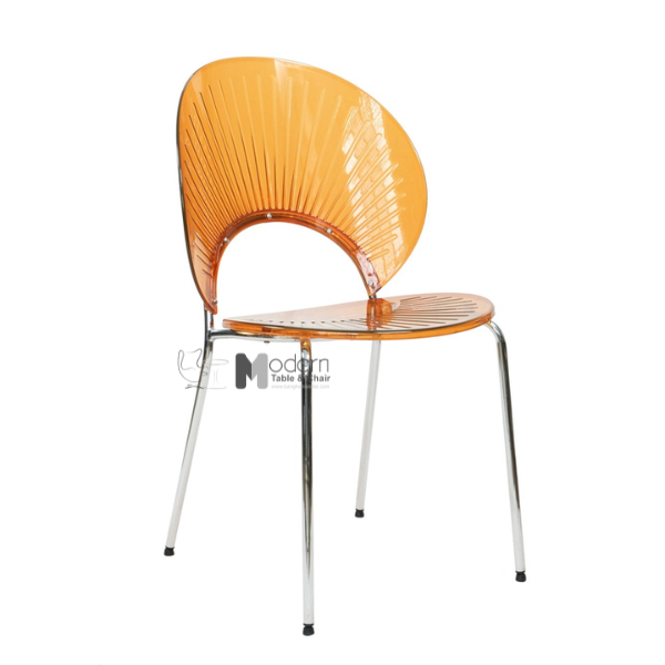 Ghế tiếp khách nhựa trong suốt màu cam.